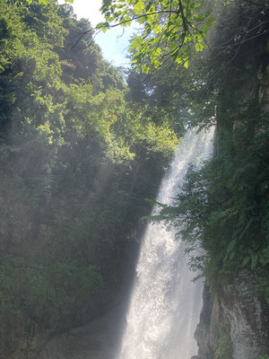 階段を降りて行くと水量の多い滝が目に飛び込んで来ました!