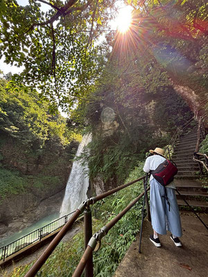 1、2カット目は階段途中から見える滝の様子