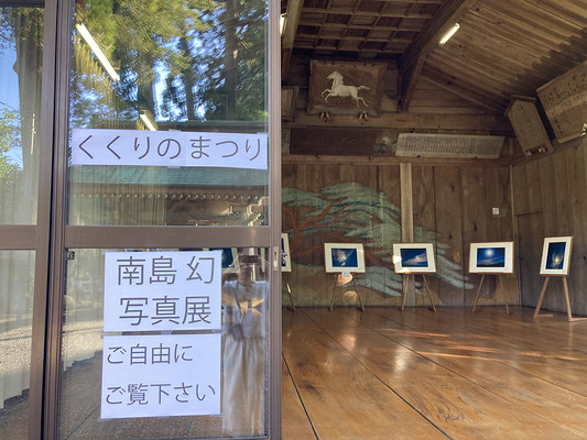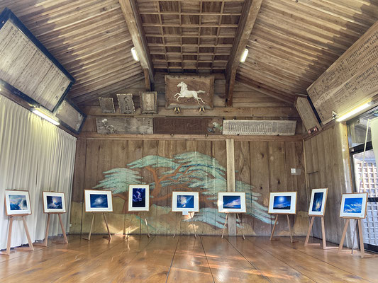 そして森部宮司のご厚意で以前の作品展のように作品を何点か神楽殿に展示をするということになりました。