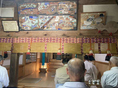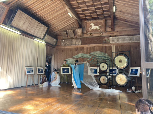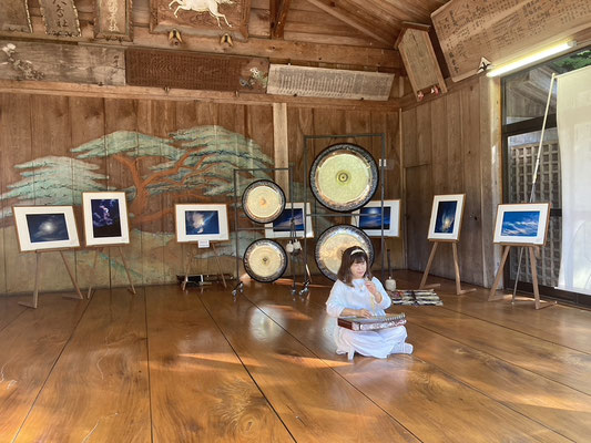 以前にこの神楽殿で〝神々の光〟という作品展(2017年)をさせて頂いた経緯があることから宮司さんに今回の使用許可をもらいに行くので同席をして欲しいという事でした。